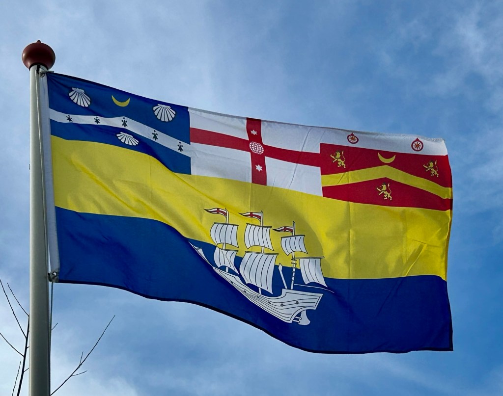 In het midden is de vlag van Engeland afgebeeld (het zogenaamde St. George’s Cross), dit als eerbetoon aan Arthur Phillip.