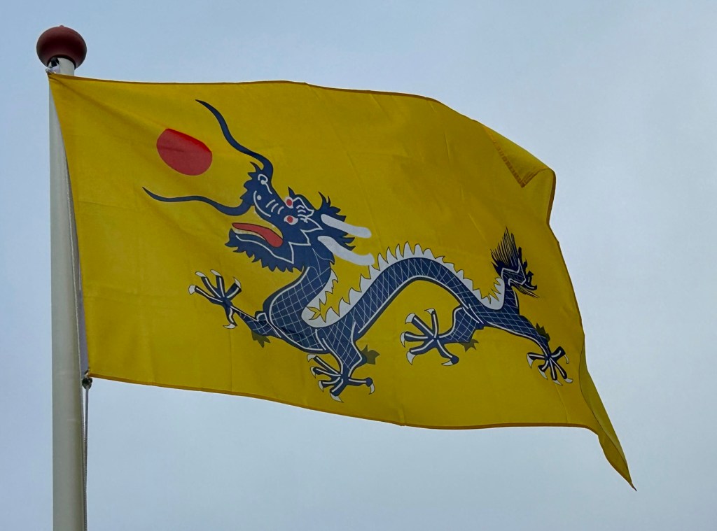 Dit ontwerp kennen we van slechts één foto en daar staat de vlag maar voor de helft op! Ondanks dat kunnen we wel vaststellen dat dit de directe voorloper van de huidige vlag is.