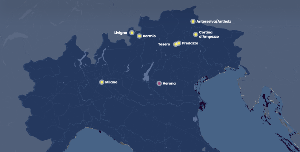 Naast Milaan en Cortina d’Ampezzo zullen ook Antholz, Bormio, Livigno, Predazzo en Tesero als locaties voor de Winterspeln gebruikt worden.