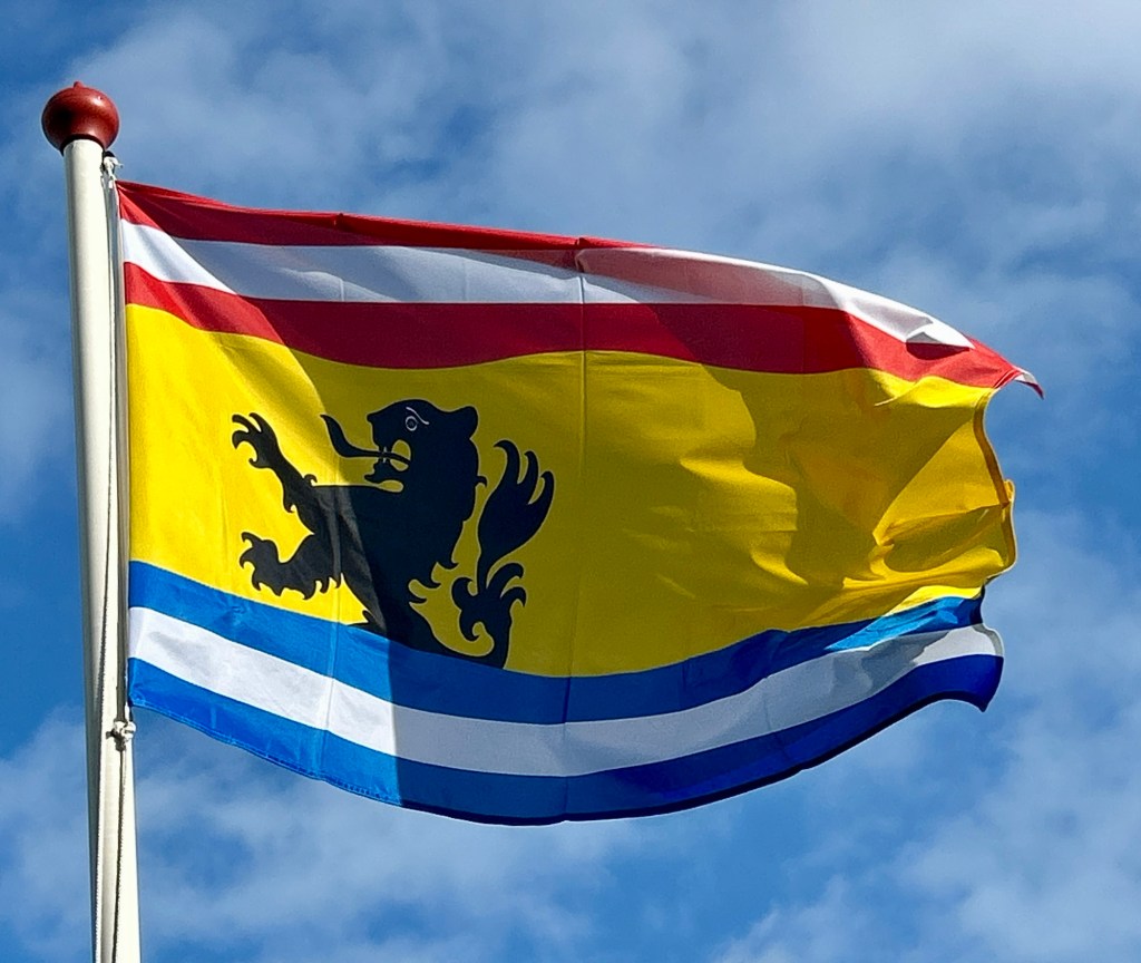 De Zeeuws-Vlaamse vlag bestaat sinds 2009. Dingeman de Koning uit Axel ontwierp hem volgens heraldische regels.