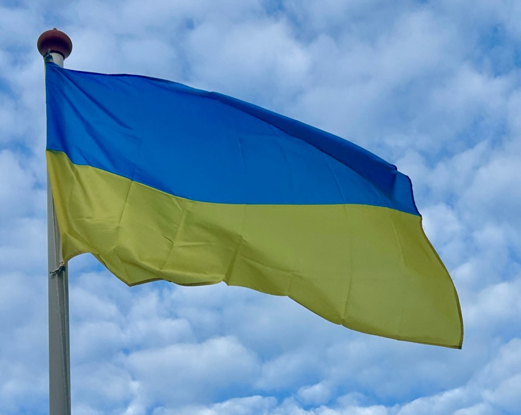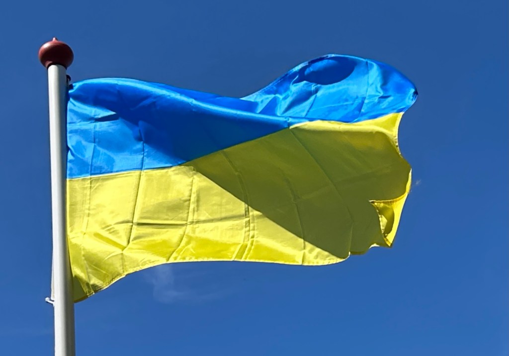 De vlag van Oekraïne bestaat uit twee even brede horizontale banen van blauw en geel.
