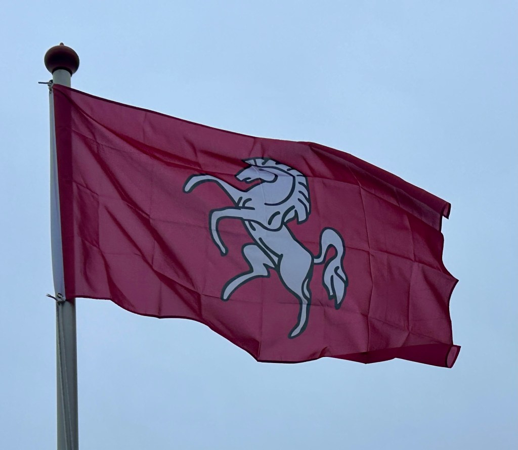 Daarmee is het witte paard ‘familie’ van een ander gebied op het Europese vasteland met dit symbool: Nedersaksen, dat min of meer ‘op de route’ lag vanuit Jutland. Ook daar zien we een wit paard op een rode ondergrond.