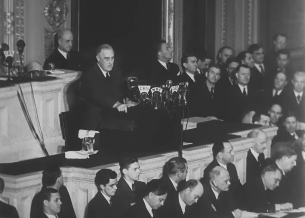 President Roosevelt tijdens zijn State of the Union op 6 januari 1941 (screenshot)
