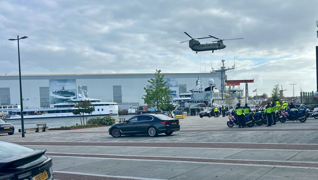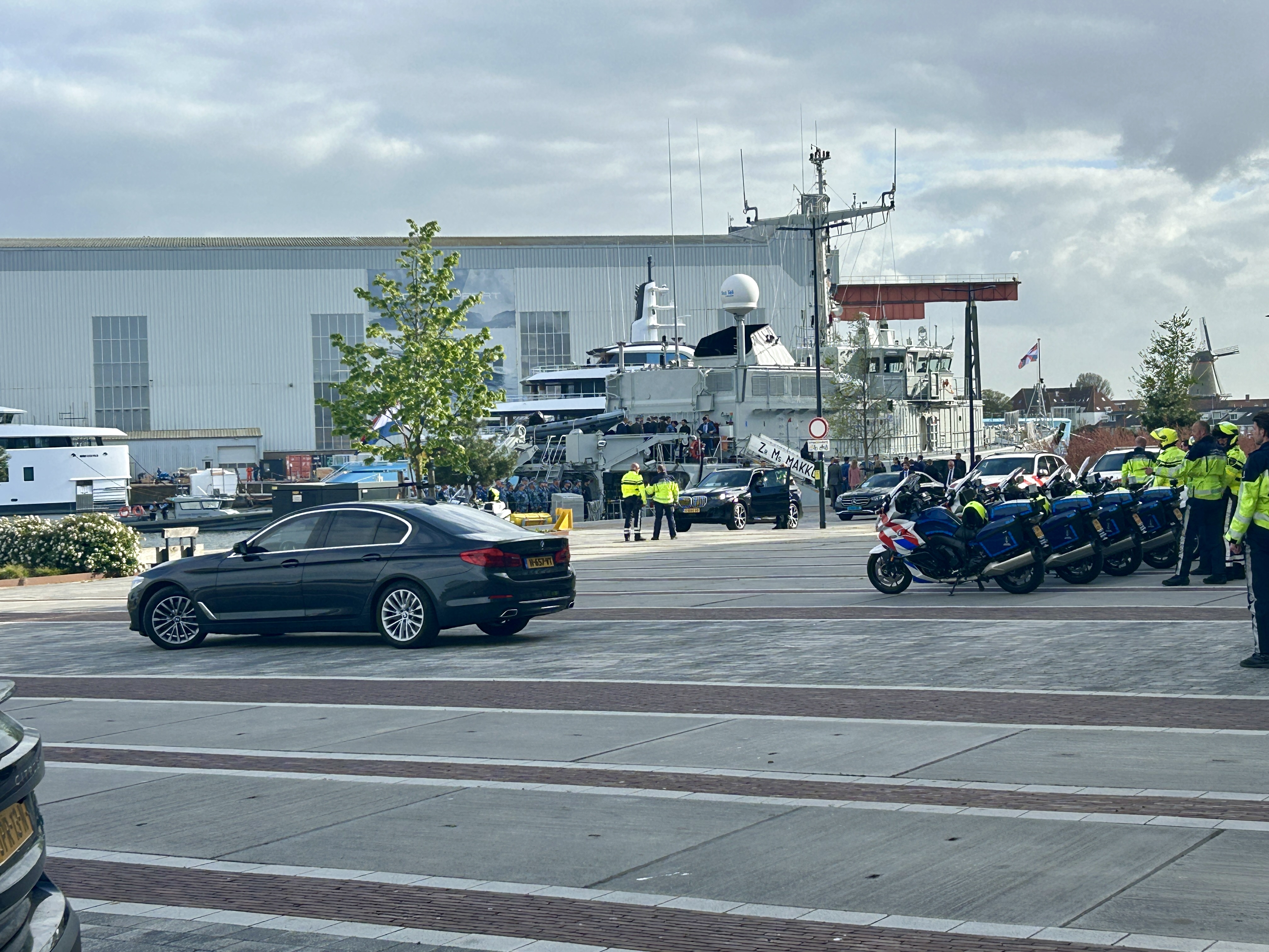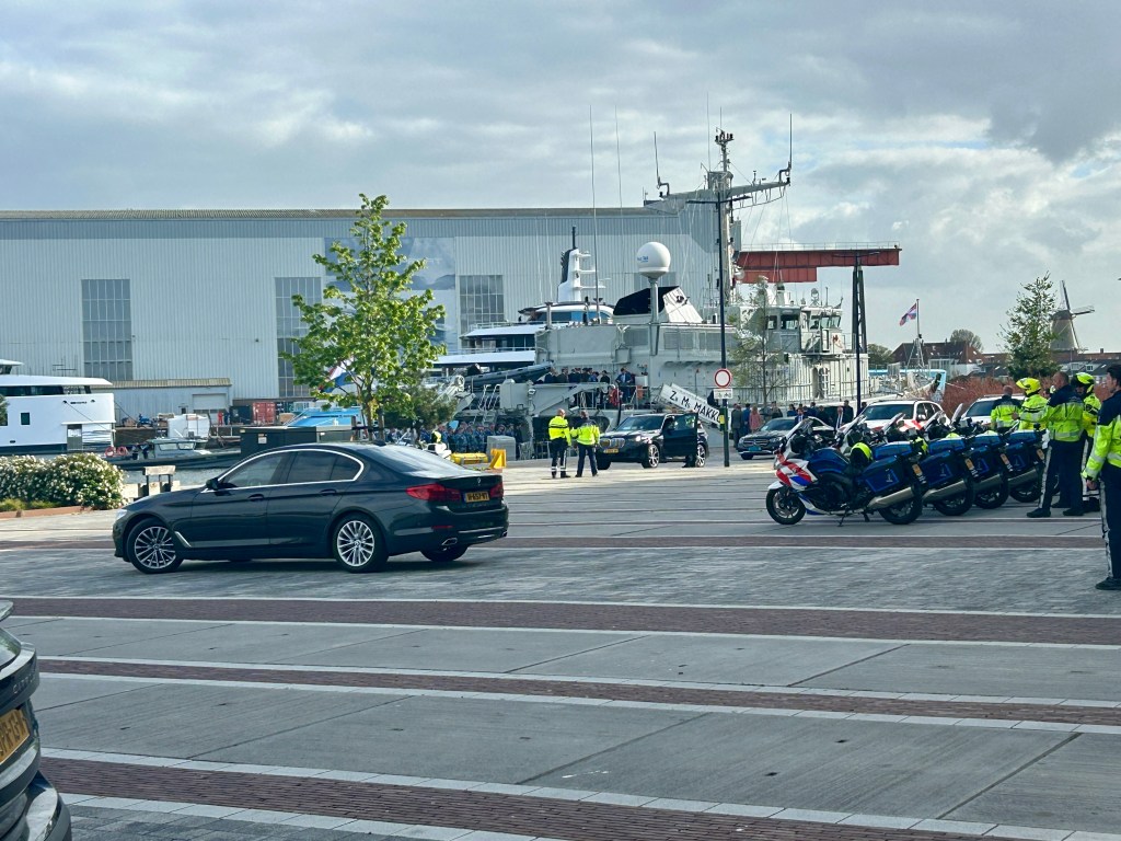 Tegen het einde van de middag vertrok de Oekraïense president samen met premier Jetten, voor een vooraf stilgehouden bezoek aan Vlissingen, voor een bezichtiging van de mijnenjager Zr.Ms. Makkum, die inmiddels buiten dienst is gesteld.