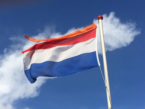 Voor een beschrijving van de Nederlandse vlag en de vandaag ook aanwezige oranje wimpel: zie de post van 27 april 2015.