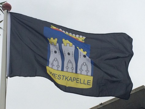 Hoewel de vlag van Westkapelle trots in de wind wappert, bestaat hij officieel eigenlijk niet! Er is nooit een officiële vlag van de stad vastgesteld, toch moet iemand bedacht hebben dat het stadswapen op een zwart veld behoorde te staan en dat de naam ‘Westkapelle’ onderin de gouden basis van het wapenschild te zien moest zijn. Heraldisch is dit uit den boze: hoewel het tegenwoordig te kust en te keur gebeurt, zijn namen op vlaggen eigenlijk volkomen ongebruikelijk.