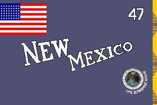 Op 6 januari 1912 werd New Mexico als 47e staat toegelaten tot de unie van de Verenigde Staten van Amerika. Arizona volgde een maand later. Alaska en Hawaii volgden in 1959 en maakten de 50 van nu vol. Van 1912 tot 1915 had New Mexico geen vlag. Op de San Diego World’s Fair in 1915 verscheen er plots één aan de muur van een tentoonstellingsruimte. Het is de inmiddels in de vergetelheid geraakte eerste vlag van de staat, ontworpen door Ralph Emerson Twitchell, een historicus uit de regio. De vlag heeft nooit werkelijk gewapperd, hij was alleen aan die muur in San Diego te bewonderen en er is maar één exemplaar van. Hij heeft een lengte van slechts 50 cm en laat op een egaal donkerblauw veld de Amerikaanse vlag in het kanton zien, de naam New Mexico ietwat schuin in zilverdraad midden op de vlag, het staatszegel onder in de vlucht en het nummer 47 (voor de 47e staat) boven in de vlucht, gele franje aan de vluchtzijde.