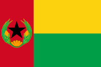 De vlag is een horizontale driekleur in rood, blauw, rood, waarbij de blauwe baan breder is dan de twee rode banen. In het midden van de blauwe baan bevindt zich een witte cirkel.