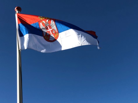 Servië houdt het bij zijn rood-blauw-witte driekleur voor burgergebruik, maar voor staatsgebruik wordt het staatswapen op de vlag geplaatst, iets dichter bij de broekingszijde dan de vlucht. In de praktijk wordt de ‘staatsversie’ echter ook volop door de bevolking zelf gebruikt.