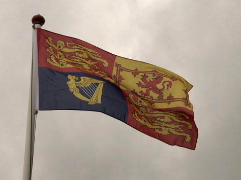 De standaard is een heraldische banier, verdeeld in vier kwartieren. De kwartieren 1 en 4 laten het wapen van Engeland zien, het 2e kwartier is Schotland en het 3e Ierland.