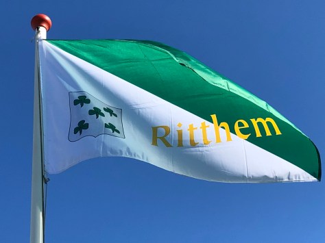 Van de Ritthemse vlag heb ik niet kunnen achterhalen wanneer hij is ingevoerd, noch of hij ‘officieel’ is. Maar aangezien naast het stadhuis van de Gemeente Vlissingen de vlaggen van de drie kernen (Vlissingen, Oost- en West-Souburg & Ritthem) naast elkaar wapperen, waarbij die van Ritthem dezelfde is als die bij Vlagblog, ga ik op z’n minst uit van een oogluikend officiële versie.