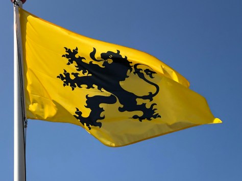 NB: Om de boel nog ingewikkelder te maken: de vlag in het bezit van Vlagblog is een soort kruising tussen de twee beschreven vlaggen. Bij deze de belofte dat bij de volgende Vlaamse feestdag de enige juiste Vlaamse vlag aan de mast hangt!