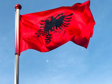 Shqipëria noemen de Albanezen hun land, “Land van de adelaars”, en dat is ook gelijk het symbool van het land, in dit geval een tweekoppige adelaar. Op de egaal rode vlag is deze vogel afgebeeld.