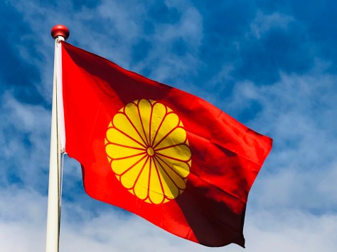 De keizerlijke standaard van Japan is rood met in het midden een gestileerde chrysant (Chrysantemum) met zestien bloemblaadjes in goud.