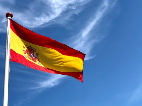 De Spaanse vlag is een horizontale driekleur van rood-geel-rood, waarbij de gele baan in het midden dubbel zo breed als als de twee rode banen. bestaat in twee varianten: zonder en mét staatswapen.