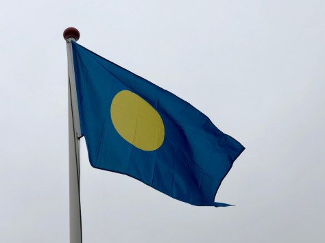 Met de onafhankelijkheid in het vooruitzicht, leek het de autoriteiten in 1979 een goed idee een ontwerpwedstrijd voor een eigen vlag te organiseren. Dat leverde ruim 430 inzendingen op (sommige bronnen spreken van ruim 1000 inzendingen, andere over slechts 20!). De vlag die we hierboven zien was echter niet de winnaar van de wedstrijd, maar de nummer twee! Het winnende ontwerp (waarvan ik na lang spitten niet één afbeelding ben tegengekomen!) was dat van een blauw veld met daarop een traditionele bijl in geel in een rode cirkel met daaromheen zestien witte sterren. De witte sterren stonden voor de zestien gemeentes die Palau telde (sinds 1984 zijn dat ‘staten’).