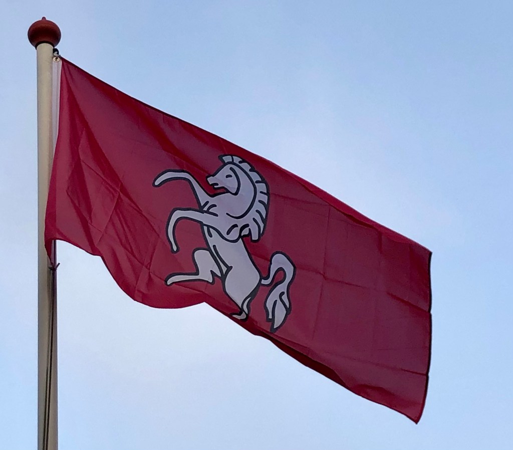Daarmee is het witte paard ‘familie’ van een ander gebied op het Europese vasteland met dit symbool: Nedersaksen, dat min of meer ‘op de route’ lag vanuit Jutland. Ook daar zien we een wit paard op een rode ondergrond.
