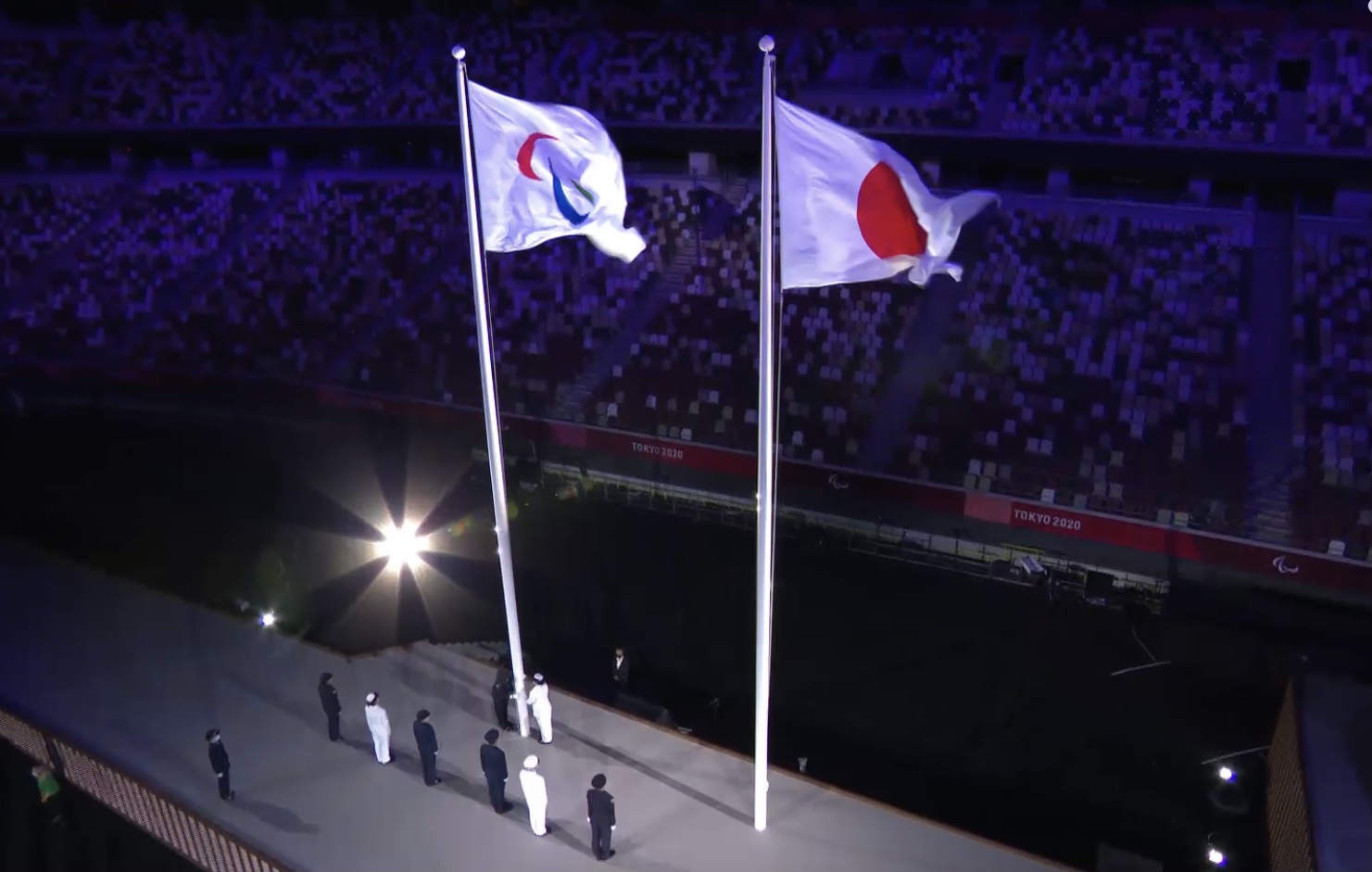 Bij de sluitingsceremonie op 28 september echter werd de nieuwe vlag met dit symbool onthuld bij het aanbieden aan de volgende gaststad voor 2008: Beijing. De vlag werd echter voor het eerst gebruikt tijdens de Paralympische Winterspelen van 2006 in Turijn (Italië).