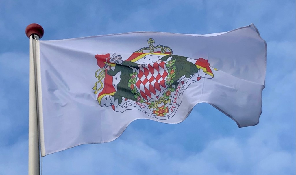 De “bonus” is de prinselijke staatsvlag van Monaco, die ook vanaf het paleis wappert als Albert aanwezig is en die in de tweede helft van de middag bij Vlagblog zal wapperen. Deze vlag met wapen was tot 1881 de nationale vlag van het land.
