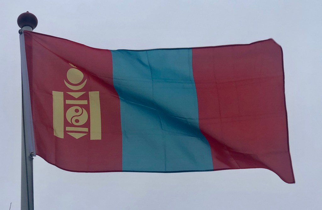 De rode kleur werd tot 1992 uitgelegd als kleur van de revolutie, nu als symbool voor voorspoed en liefde. Het blauw stond -en staat- voor de eeuwig blauwe hemel, het is tevens de traditionele kleur van Mongolië.