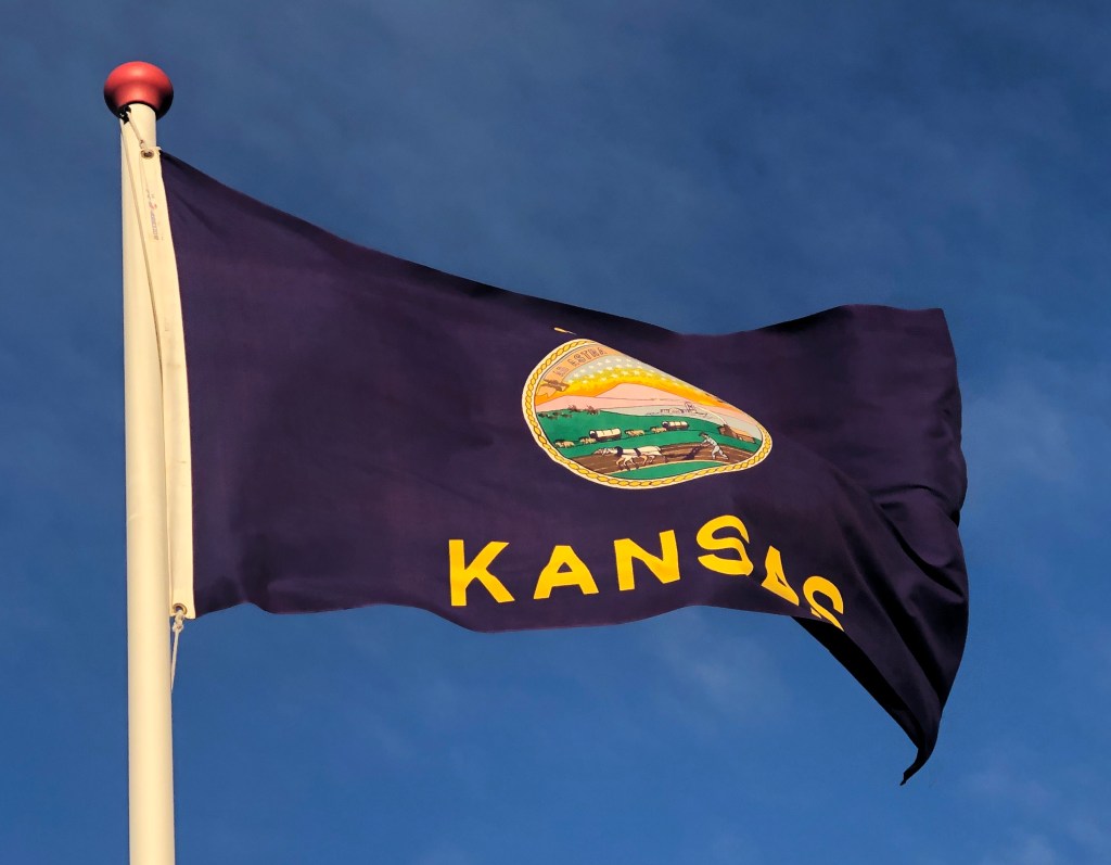 In 1927, 62 jaar na het einde van de burgeroorlog werd er een vlag voor de staat vastgesteld. Zoals bij wel meer Amerikaanse staten, werd gekozen voor een afbeelding van het staatszegel, ontworpen door senator John James Ingalls.