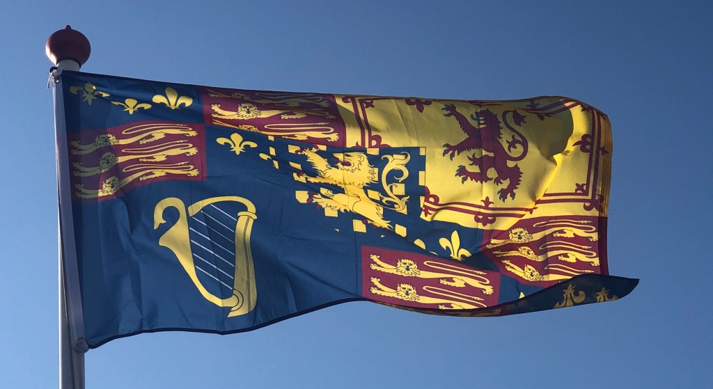 Dit is de koninklijke standaard die Willem’s schoonvader James II voerde. Toen Willem hem echter samen met zijn vrouw Mary opvolgde in 1588 moest zijn dynastie ook op de standaard vertegenwoordigd worden.