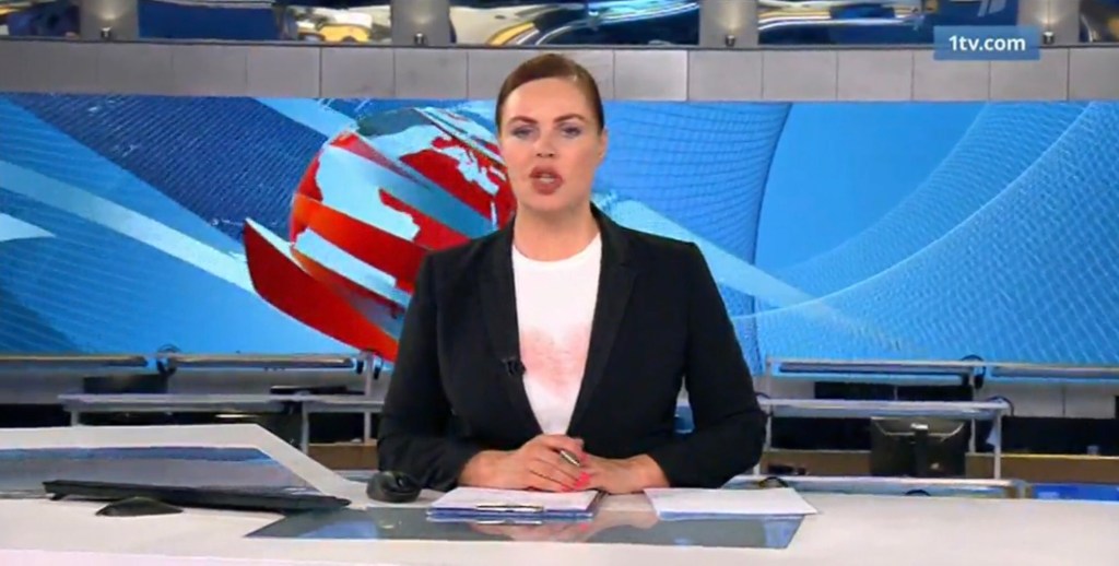 Niet minder opvallend was de actie van de Russische tv-producente Marina Ovsjannikova, werkzaam bij Channel One Russia (Pervyj kanal). Op 14 maart, tijdens een live-nieuwsuitzending over de Russische invasie (een verboden woord in Rusland), verscheen ze plotseling in beeld, achter nieuwspresentatrice Kateryna Andreyeva, met een handgeschreven anti-oorlogsposter.