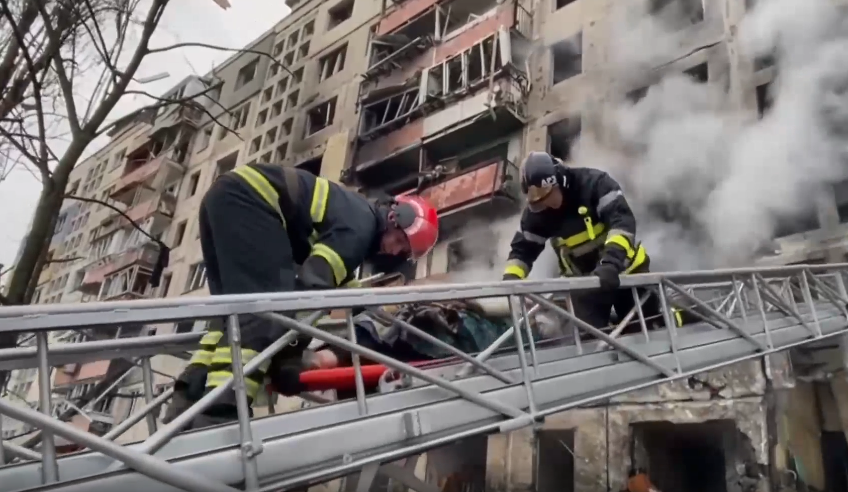 Kiev is deels omsingeld, de Russen zitten op zo’n 15 tot 20 km van de stad, waardoor de buitenwijken binnen artilleriebereik zijn komen te liggen en inmiddels zwaar zijn beschoten met alle ellende van dien: verwoestingen en branden.
