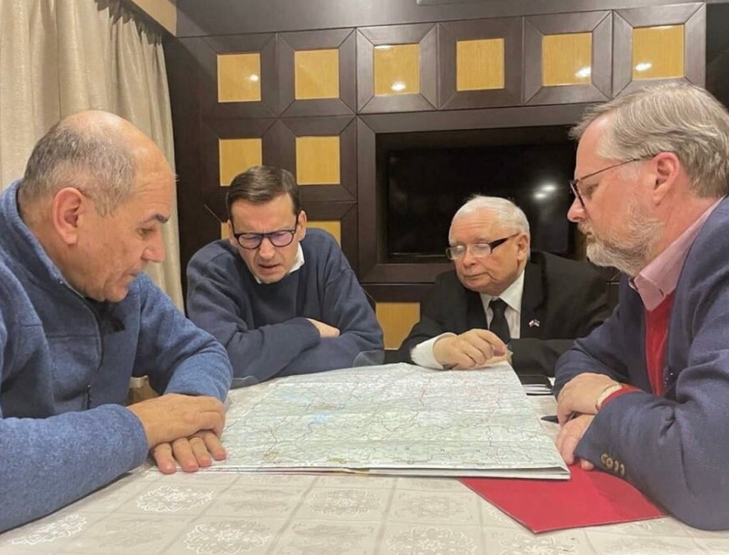 Dan was er nog de opvallende reis van de premiers van Polen, Tsjechië en Slovenië, die eergisteren per trein naar Kiev reisden en daar spraken met president Zelensky en om hem steun te betuigen.