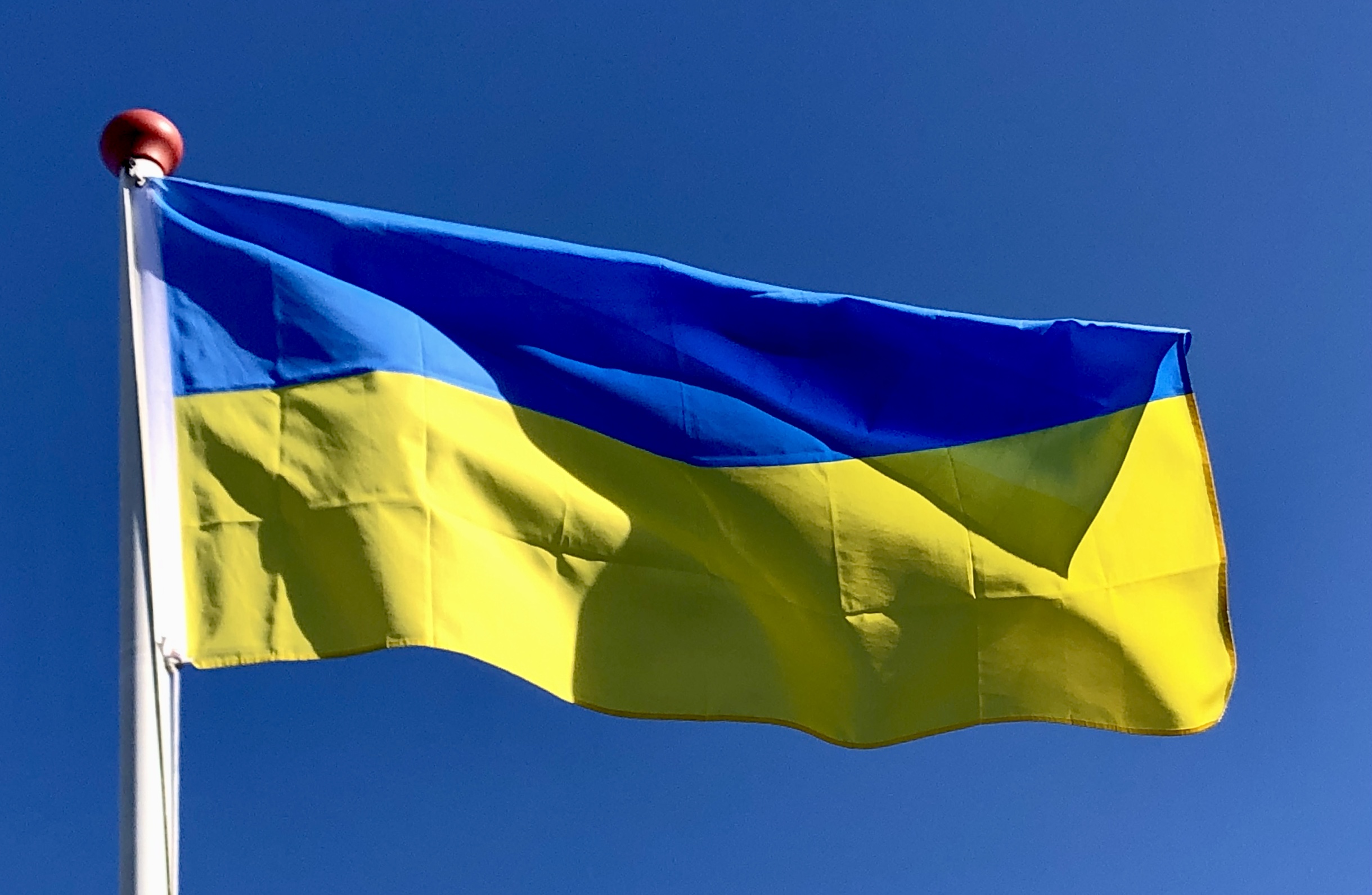 De vlag van Oekraïne bestaat uit twee even brede horizontale banen van blauw en geel.