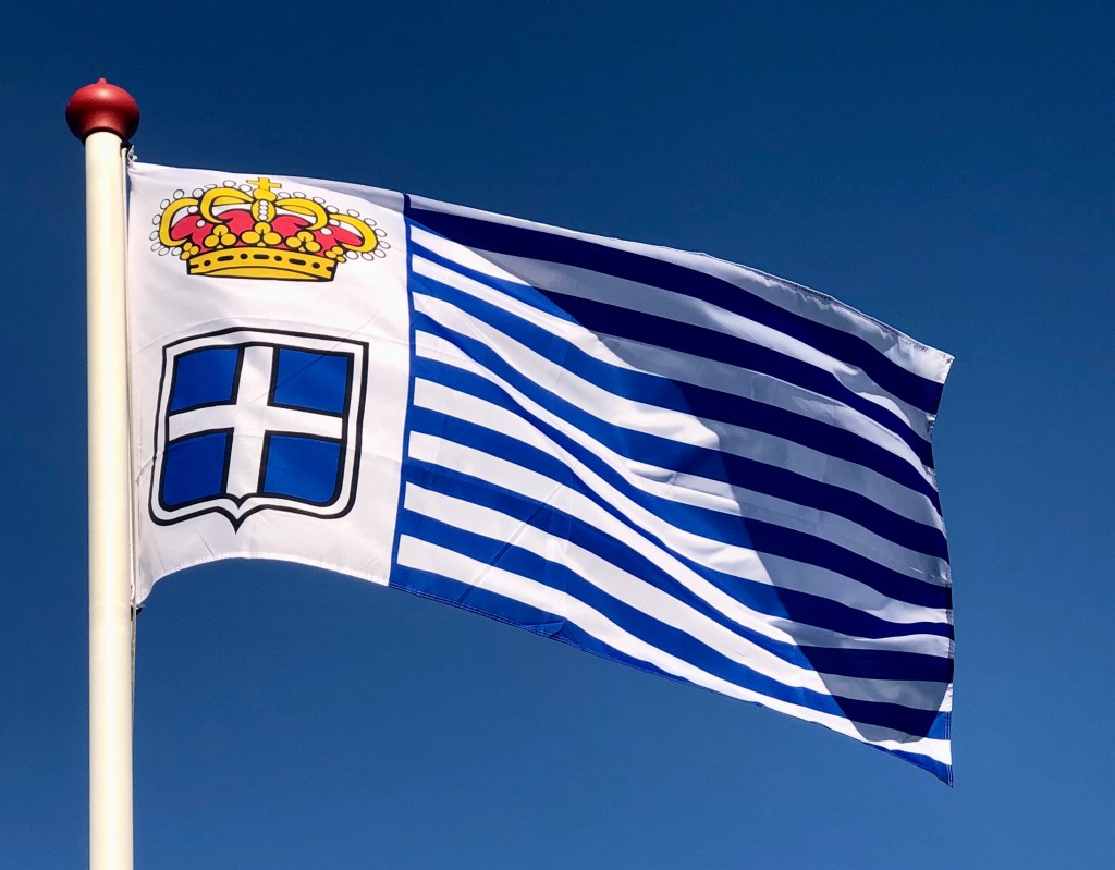 Uiteraard kwamen er ook een vlag (daar komen we straks natuurlijk nog over te spreken) en een staatswapen met de wapenspreuk Sub Umbra Sedi (Ik zat in de schaduw).