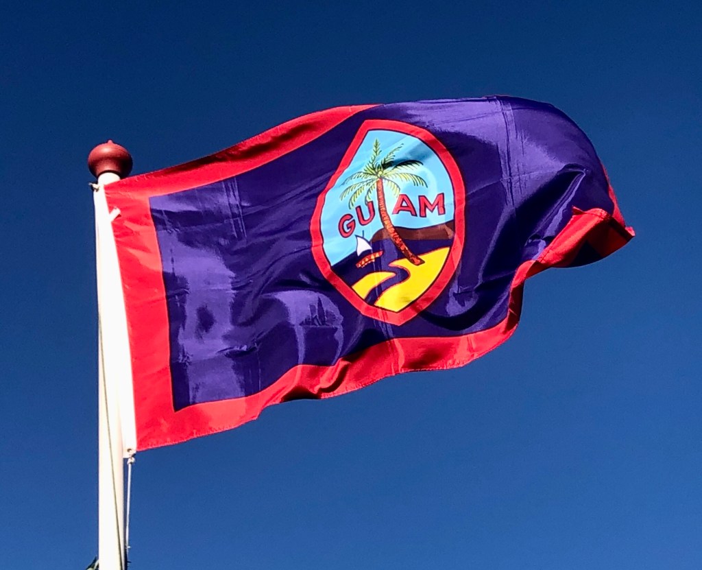 De vlag van Guam werd ingevoerd op 4 juli 1917, toen Guam inmiddels 19 jaar een Amerikaans territorium was, maar wapperde voor het eerst op 6 juli. Officieel werd hij echter pas aangenomen op 9 februari 1948. Het ontwerp zou van Helen Longyear Paul zijn, de vrouw van de Amerikaanse marine-officier Carrol E. Paul. ‘Zou zijn’, want het is niet geheel zeker dat zij de ontwerpster was. De lokale bevolking gaat ervan uit dat de werkelijke ontwerper Francisco Feja Feja was.