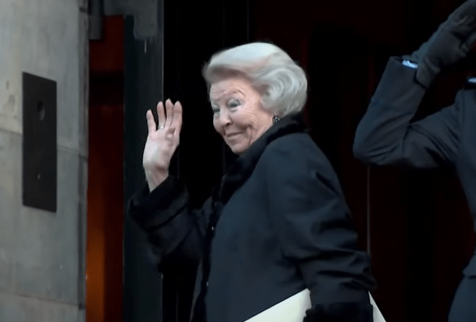 Prinses Beatrix op 17 januari dit jaar tijdens haar aankomst bij het Koninklijk Paleis op de Dam in Amsterdam voor de traditionele nieuwjaarsontvangst later die dag (screenshot)