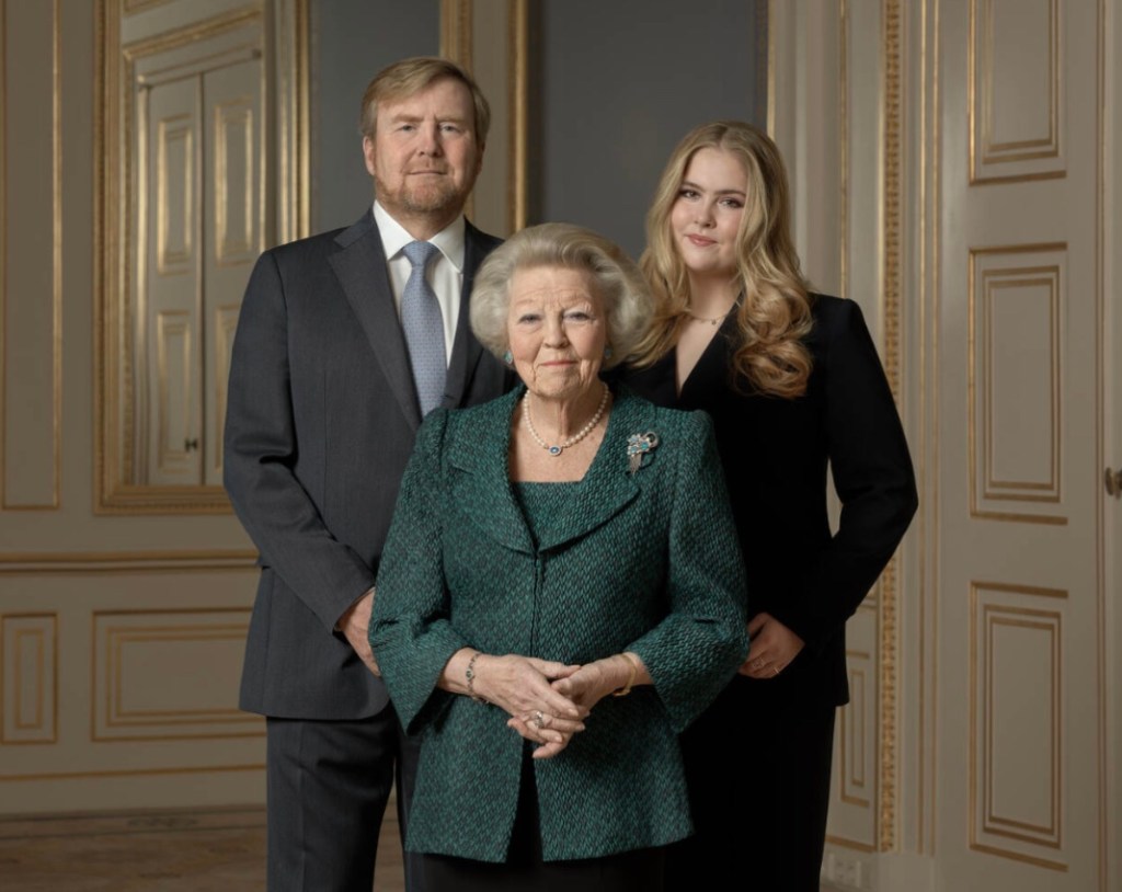 De RVD gaf gisteren nieuwe foto’s vrij van Prinses Beatrix, waaronder deze met Koning Willem-Alexander en Amalia, Prinses van Oranje, december 2022 (RVD / foto: Gemmy Woud-Binnendijk)
