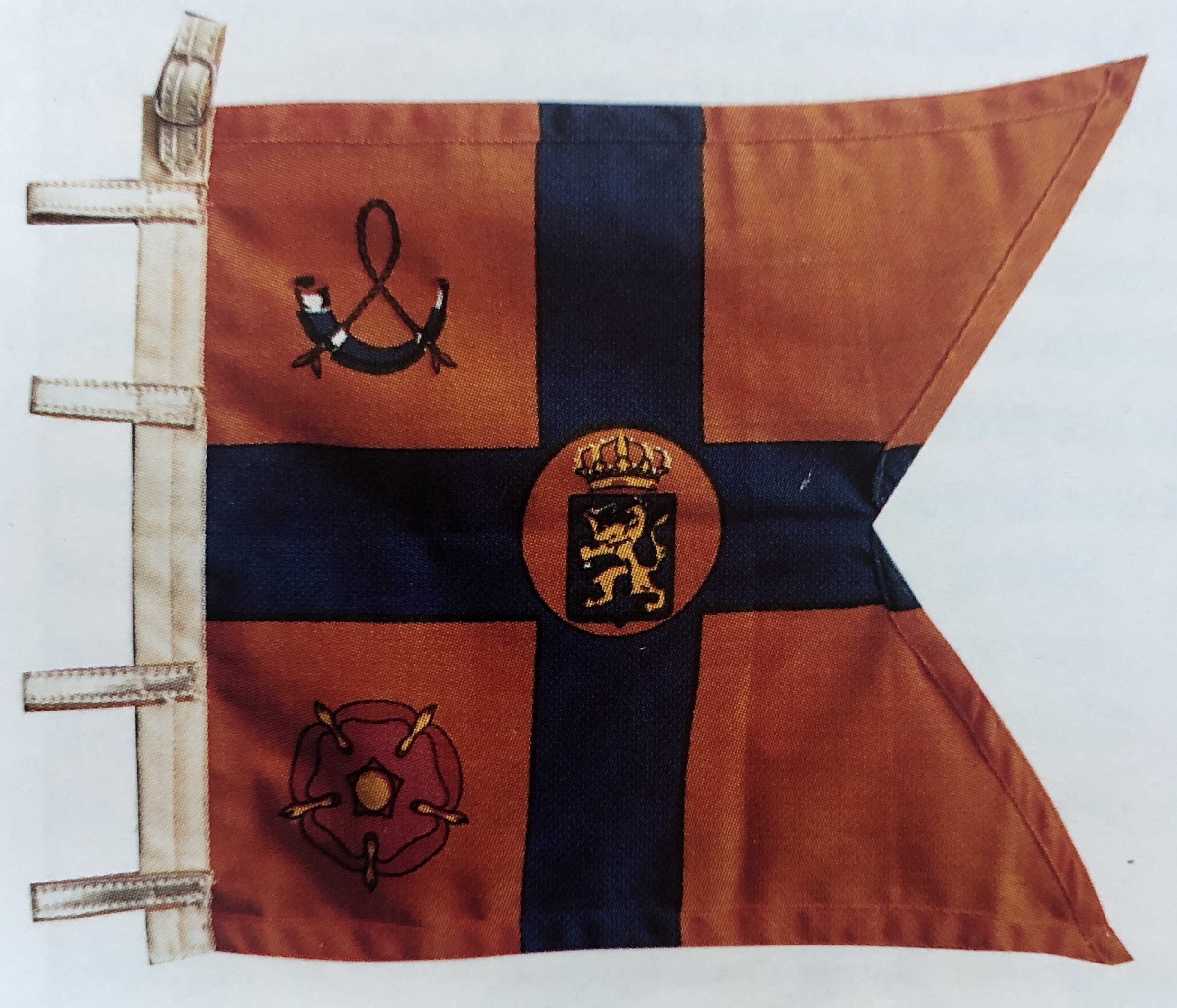 Het rood-wit-blauw van de vlag werd gehandhaafd maar in de broektop kwam een afbeelding te staan. Hoewel deze vlag oorspronkelijk als marinevlag werd ingevoerd, werd ze uiteindelijk ook aan land gevoerd.