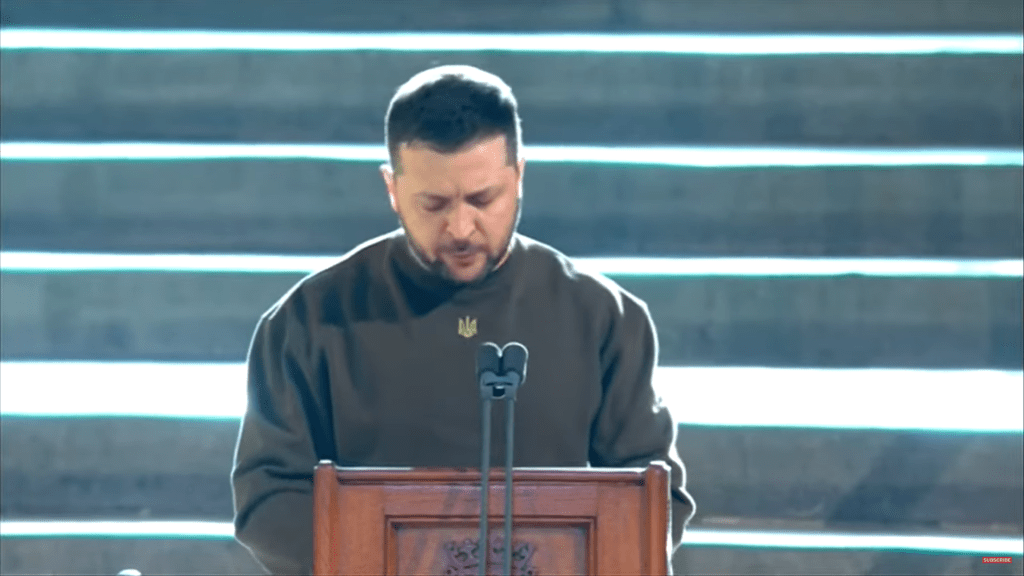 Het was een drukke dag voor Zelensky, want hij reisde ’s avonds af naar Parijs, voor een ontmoeting met de Franse president Macron, waarbij ook de Duitse bondskanselier Scholz aanschoof.