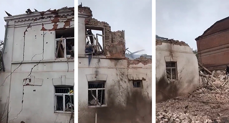 Tijdens Russische beschietingen met S300 raketten op de Oost-Oekraïense stad Koepjansk werd gisteren een museum vol geraakt, waarna het gebouw instortte.