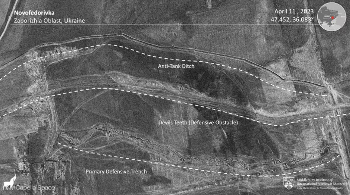 De verdedigingswerken strekken zich uit van West-Rusland via Oost-Rusland naar de Krim en bestaan uit geprefabriceerde bunkers, drakentanden en tankwallen en zijn aangelegd sinds de Oekraïense opmars van afgelopen november.