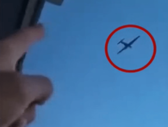 Een amateur-filmer in Moskou wijst naar een overkomende drone (screenshot)
