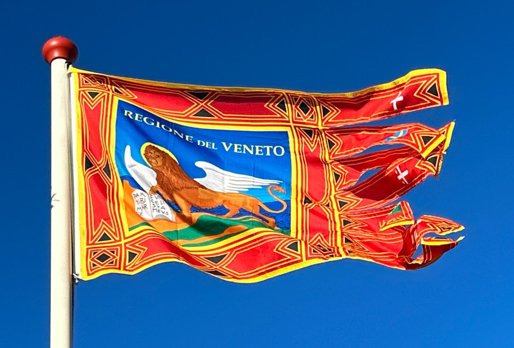 De vlag die vandaag wappert is die van de regio Veneto, waarvan Venetië de hoofdstad is. Het is een vlag waar veel op te zien is. Het borduurt voort op de vlag van de stadstaat Venetië (421-1797), als een soort 2.0.