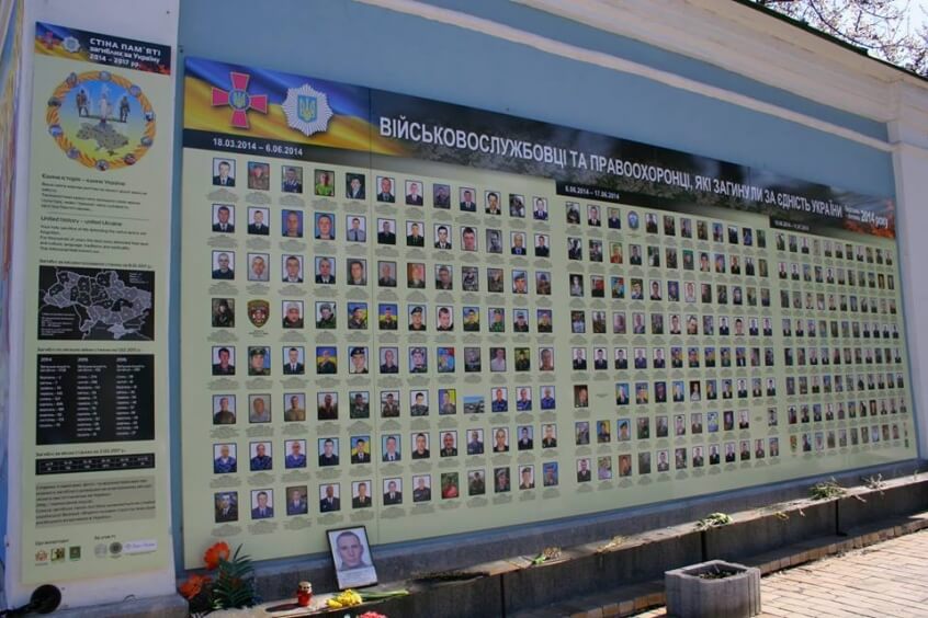 De president en zijn buitenlandse gasten legden kransen bij de Herdenkingsmuur voor de Gevallenen aan de zijkant van het Sint Michielsklooster aan de Trohsvyatitelska-straat.