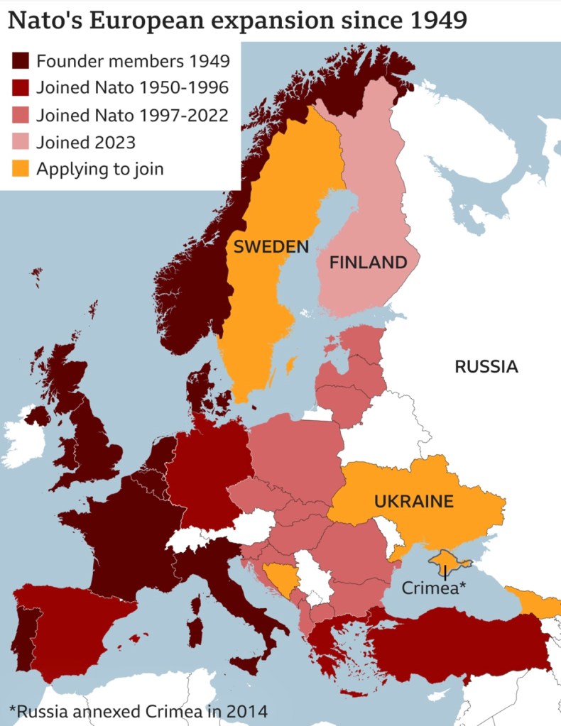 De Russische president Poetin stuurde zijn leger in 2022 naar Oekraïne o.a. in de verwachting dat het de expansie van de NAVO zou tegenhouden en het westerse samenwerkingsverband zou verzwakken. Met de toevoeging van eerst Finland en nu Zweden is nu het tegenovergestelde gebeurd.