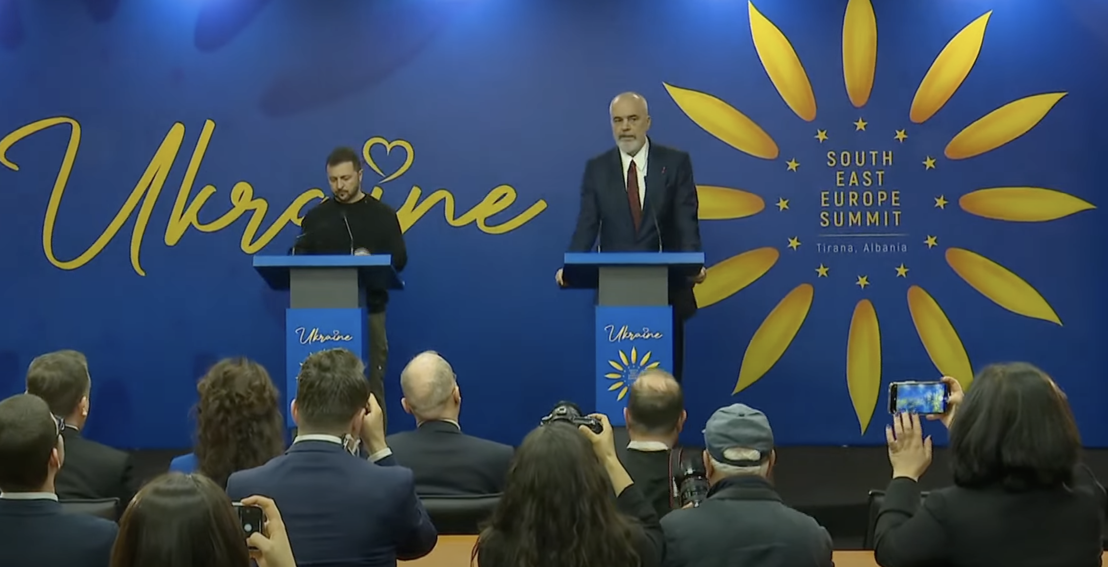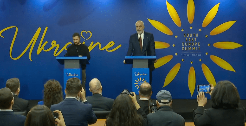 President Zelensky reisde afgelopen dinsdag naar Tirana (Albanië), zodat hij woensdag voor een ontmoeting met leiders uit Zuidoost-Europa kon aanschuiven, in een poging steun en wapens naar Kiev te laten blijven stromen, nu Rusland winst boekt op het slagveld, twee jaar na de invasie van zijn buurland.