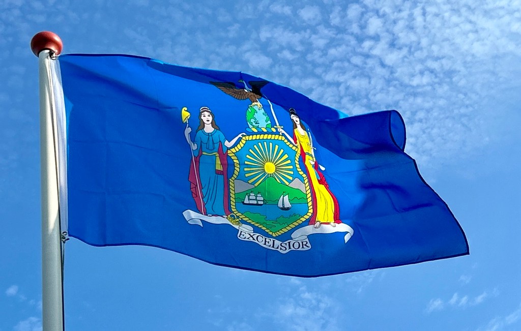 Op 26 juli 1788, nu dus 236 jaar geleden, werd New York de 11e staat die zich aansloot bij de unie van de oorspronkelijke 13 staten, die het begin vormt van de onafhankelijke Verenigde Staten van Amerika. Op de blauwe vlag is het staatszegel van New York afgebeeld, wat sinds 1778 in gebruik is.