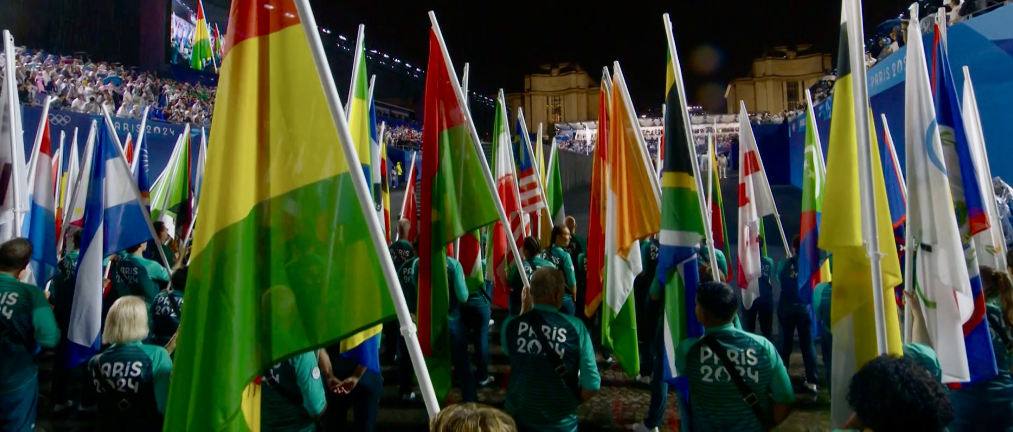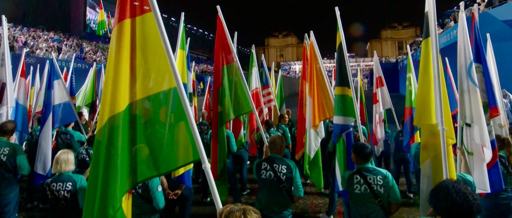 De 206 landenteams teams met 10.500 sporters, zullen met hun vlaggen langs de 6 km lange route varen, die zich uitstrekt vanaf de Pont d’Austerlitz naar de Pont d’Iéna ter hoogte van de Eiffeltoren en de Jardins du Trocadéro, waar de openingsceremonie zelf zich zal voltrekken. De Spelen zullen worden geopend door president Macron, het motto van de Olympiade luidt: Ouvrons grand les Jeux (Laten we de Spelen groots openen).