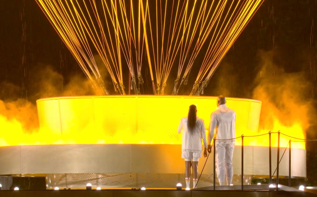 Het logo van de Olympische Zomerspelen van Parijs, een ontwerp van Sylvain Boyer, het Olympisch vuur is erin te herkennen, maar ook het gezicht van Marianne, sinds jaar en dag de verpersoonlijking van Frankrijk, tevens een knipoog naar de Spelen van 1900, die ook in Parijs plaatsvonden en waar vrouwelijke sporters voor het eerst werden toegelaten