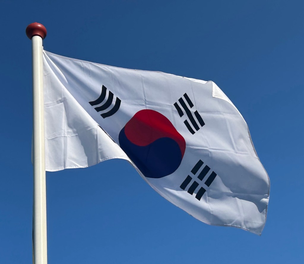 Sinds 15 augustus 1948 is dit de officiële vlag van Zuid-Korea, Noord-Korea heeft op 9 september 1948 zijn eigen vlag ingevoerd en die zien we hierboven.