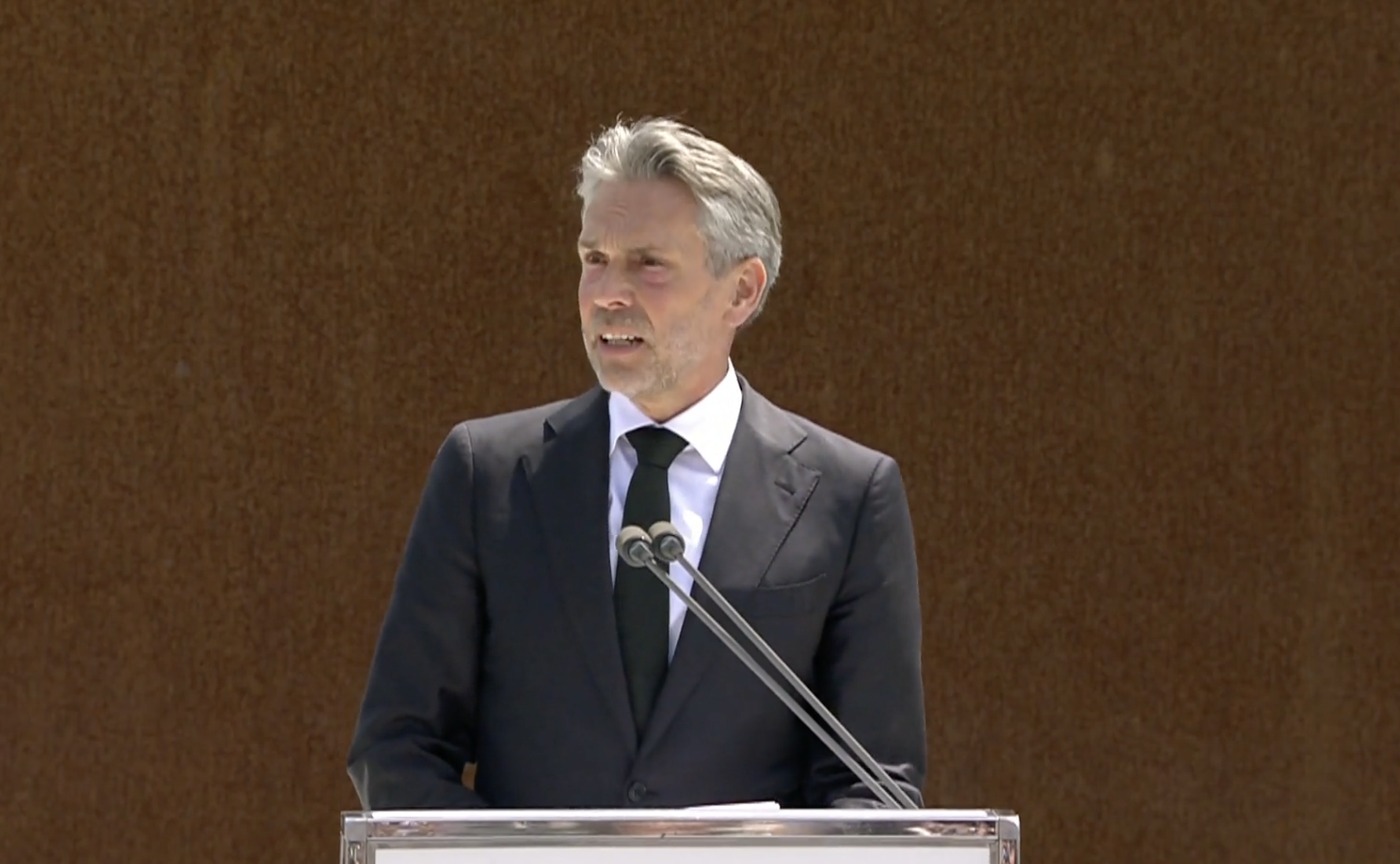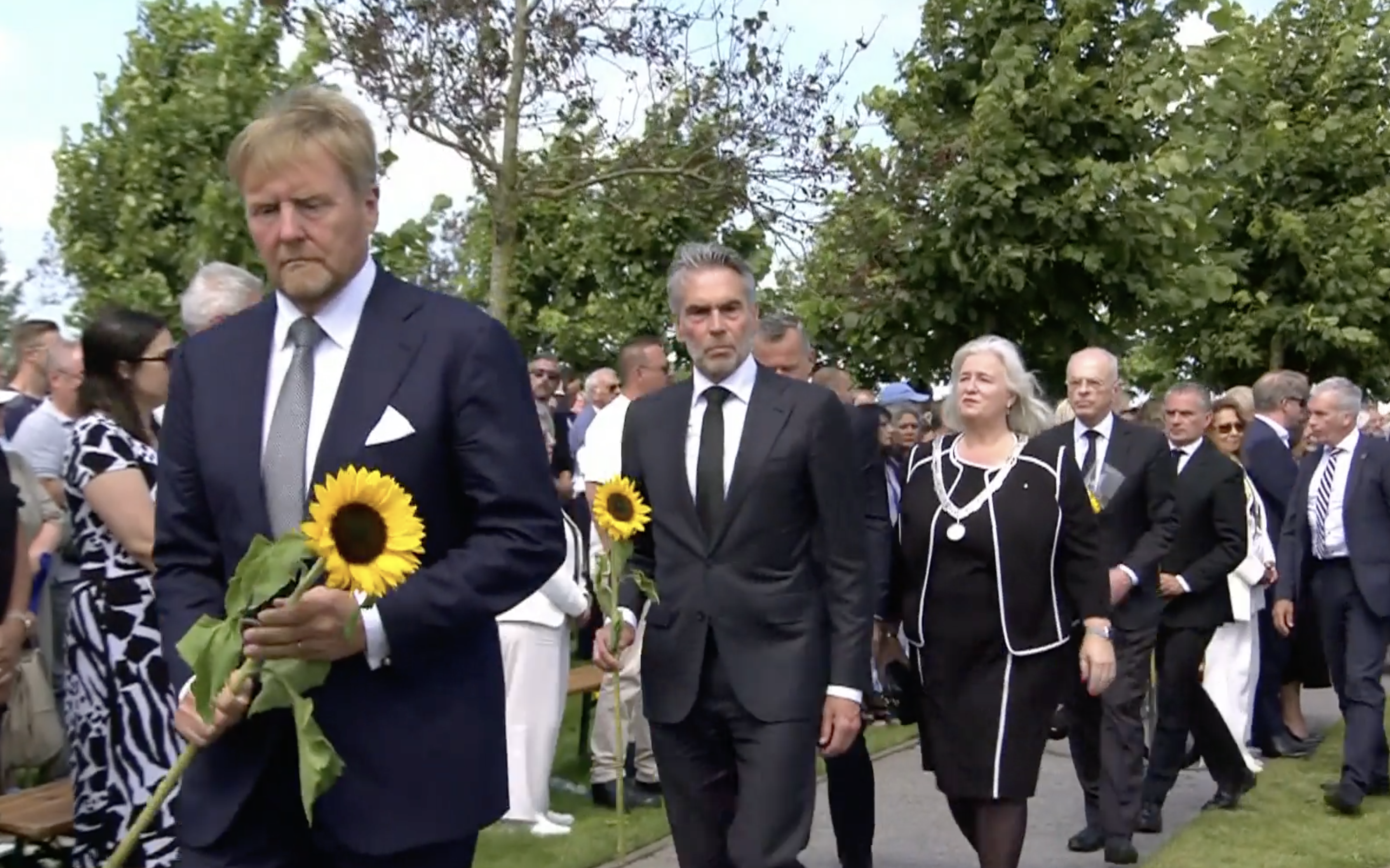 Familieleden van de MH-17 slachtoffers en genodigden kwamen bij elkaar bij het MH-17-monument in Vijfhuizen, onder de rook van SchipholV.l.n.r.: Piet Ploeg, voorzitter van de Stichting MH-17, Koning Willem-Alexander en David van Weel, minister van Justitie en VeiligheidPremier Dick Schoof hield een toespraak……net als de voorzitter van de Stichting MH-17, Piet Ploeg, die tevens uitdrukkelijk oud-premier Mark Rutte bedankteHet leverde een spontaan applaus op voor Rutte, links naast hem de oud-staatssecretaris van Justitie en Veiligheid uit Rutte’s laatste kabinet, Eric van der BurgNa het voorlezen van alle 298 namen van de slachtoffers, werden er zonnebloemen achtergelaten, Koning Willem-Alexander opende dit défilé, gevolgd door premier Schoof en de burgemeester van Haarlemmermeer, Marianne Schuurmans-Wijdeven