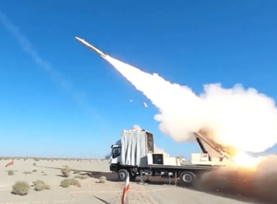 Lancering van eenIraanse ballistische Fath-360-raket (screenshot)