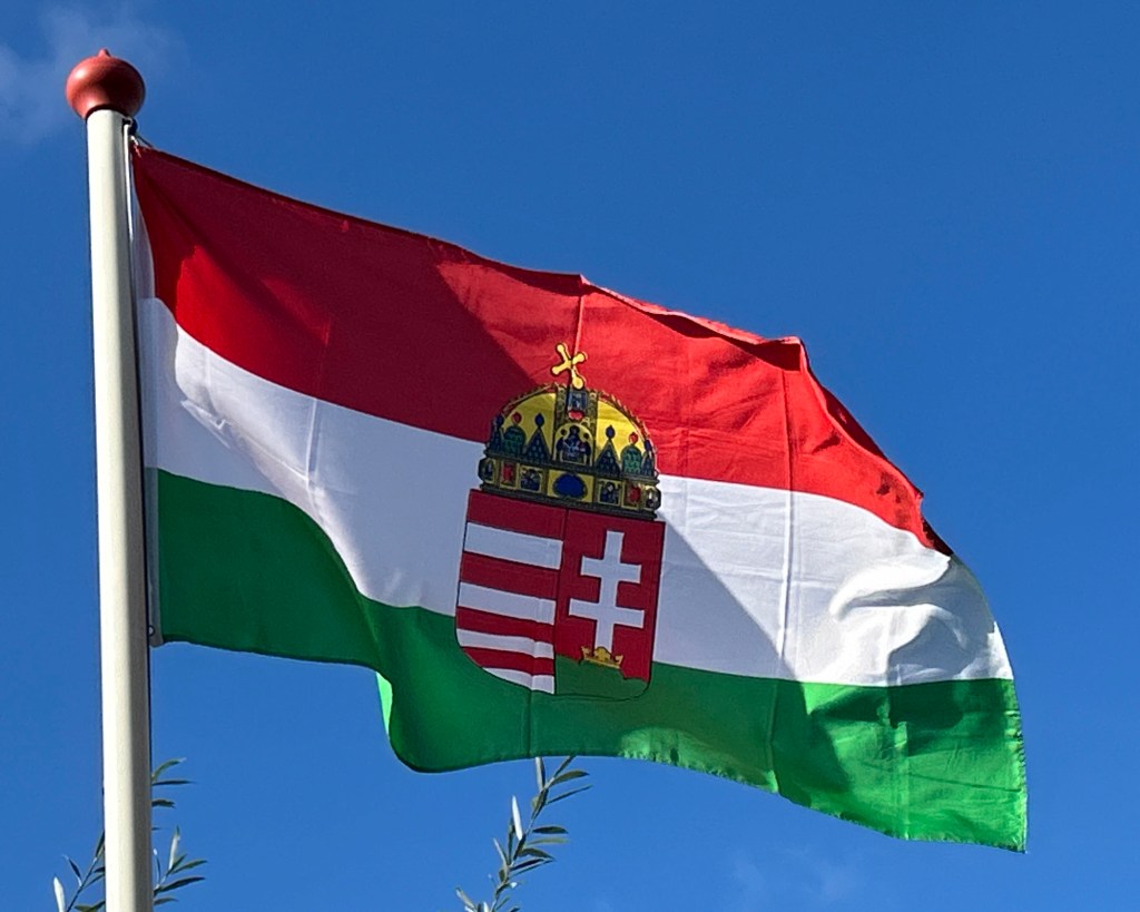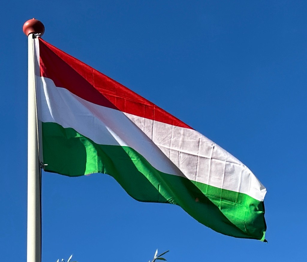 De vlag van Hongarije is een driekleur van horizontale banen in rood, wit en groen, afkomstig uit het staatswapen. Als zodanig is de vlag sinds 1848 in gebruik.